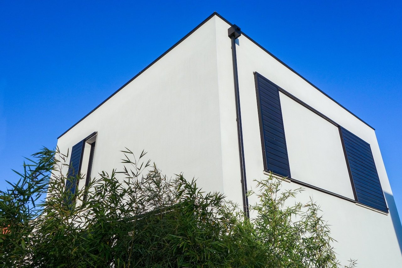 Malgré l’orientation du terrain peu avantageuse avec un jardin au Nord, la conception de la maison devait tenir compte des apports solaires gratuits des façades orientées au sud. Ainsi, une grande baie vitrée à l’étage donne sur un vide sur séjour permettant ainsi d’éclairer et de chauffer les deux niveaux de la maison. Cet apport solaire est néanmoins maitrisé grâce à un volet coulissant protégeant la maison des surchauffes d’été.