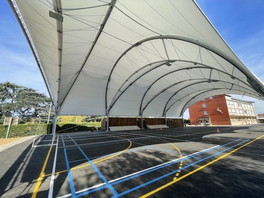 Située à l’Est du centre-ville de Colomiers, l’École et Collège Sainte Thérèse nécessitait un rafraîchissement des espaces extérieurs dédiés aux activités sportives. La demande englobait la construction de vestiaires / cabinets d’aisances ainsi qu’une aire de jeu de la dimension d’un terrain handball afin de pouvoir accueillir différents types d’événements sportifs.